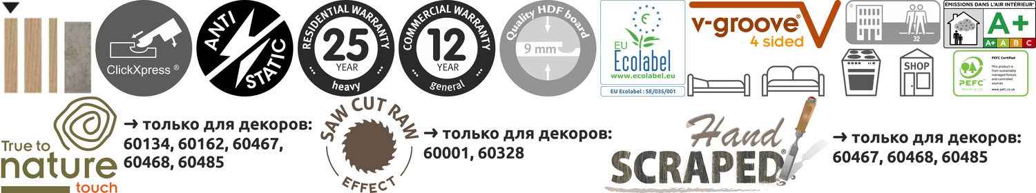 Матовая поверхность, глубокое, точное тиснение, эффект обработки вручную. Дубовые декоры из этой коллекции просятся в загородный дом, поближе к камину. А красота дерева Хикори заберет на себя весь акцент в помещении, будьте уверены "вау эффект" Вам и Вашим гостям обеспечен!